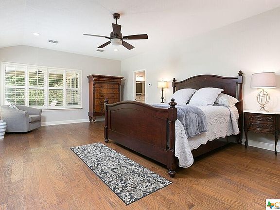 Idyllic riverfront home w/sprawling Cypress trees on nearly 2 acres. St Augustine lawn leads to private landing, great for fishing and launching kayaks. Completely updated 3096 sq. ft. ranch style w/wood and tile floors, wood shutters, wet bar with full size frig and wine frig. Master bath with hydrotherapy tub & walk in his/her closets. Automatic iron gate, over-sized garage with A/C in storage rooms. 1 room cottage and large storage/boat house w/electricity. Centrally located between New Braunfels and Boerne and close to San Antonio.