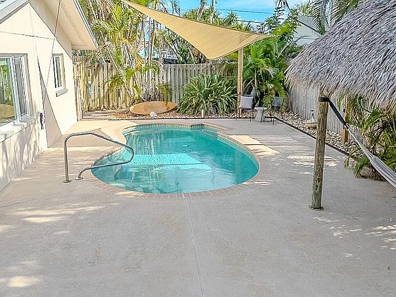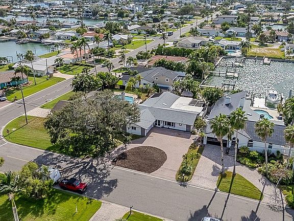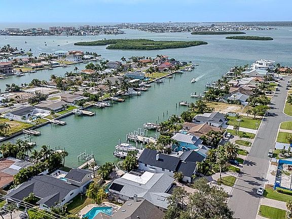 Treasure Island Canal-Front Paradise – 4BR/3BA Single Story with Pool & Dock!! Welcome to your dream waterfront home in beautiful Capri Isle in Treasure Island. This stunning one-story canal-front home offers incredible curb appeal, with a huge pavered circular driveway that provides plenty of parking for family and guests. Inside, the open-concept floorplan is designed for both comfort and entertaining, with a spacious living room that flows seamlessly into the dining and kitchen areas. The master bedroom, kitchen, dining room, and living room all enjoy views of the Intracoastal Waterway, creating a serene backdrop for everyday living. The home features four bedrooms and three bathrooms in a split floorplan design, providing privacy and flexibility for families or guests. The primary suite includes a versatile den or multi-use space and a newly renovated bathroom complete with a freestanding tub, shaker-style vanity, elegant mirror, and designer lighting. Bedroom two offers its own ensuite bathroom with a pedestal sink and standalone shower, while the guest bath includes a pedestal sink and tub/shower combination. At the heart of the home, the kitchen boasts updated shaker cabinets, quartz countertops, an undermount stainless sink, can lighting, and a skylight that fills the space with natural light. Easy-care laminate flooring runs throughout the home, enhancing its fresh, modern appeal. Outdoor living is equally impressive. A solar-heated pool with a brand-new pump (2025) includes a deep-water swim-out and is surrounded by plenty of deck space for sunbathing. A huge screened lanai with an expansive under-roof entertaining area is perfect for gatherings, while a Tiki Hut adds to the island-style atmosphere. The property’s canal frontage includes a private boat dock with direct access to the Intracoastal Waterway, making it ideal for boating, kayaking, paddleboarding, and water enthusiasts. This home has been carefully updated for peace of mind, with a new main roof in 2020, new flat roof in 2016, storm-rated windows and doors in 2021, and a brand-new AC, electrical system, and solar water heater in 2025. Located just minutes from the white sandy beaches of Treasure Island, as well as popular restaurants, shops, and attractions, this home combines waterfront living with everyday convenience. Don’t miss the opportunity to make this exceptional canal-front property your own and enjoy the best of Florida living.