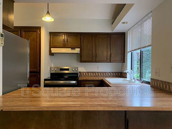 The interior features vaulted ceilings, abundant natural light, and a spacious living room complete with a woodburning fireplace. Skywall and gardenstyle windows enhance the brightness throughout the home, and a covered deck offers a peaceful place to relax with a view of the greenbelt. The kitchen includes brand new stainless steel appliances and an eating bar. The primary bedroom includes a private threequarter bath. The home also offers fresh interior paint and brandnew carpeting.