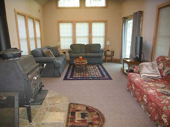 Acres of woodsPlenty of yard spaceOpen floor planWood burning stoveWindows and skylights
