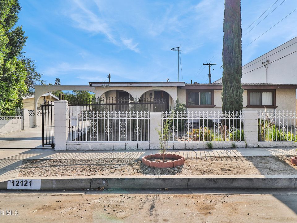 Attractive San Fernando Single family home boasting 3 bedrooms, 3 full baths and approximately 1600 square feet of living space all sitting on an over 6,000 square foot lot. This GATED home contains a long paved driveway, large detached garage, (possible ADU?), a covered patio space, and plenty of yard with fruit trees. Inside you will find an upgraded kitchen with dark cabinetry, granite counter tops, and a tile backsplash. The kitchen is open to both the dining area and good sized family room which have woodlike flooring, and upgraded baseboards and crown molding. Down the hallway you will find two secondary bedrooms, and well appointed bathrooms. The upgraded bathrooms have one with a shower over tub set up and the other is a walk in shower stall. The HUGE master suite is a stunner with separate sitting/kids room that has beautiful stone floor to ceiling fireplace, and gorgeous master bath. Great family home with even more potential!
