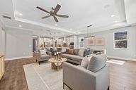 - Built-in Features, Ceiling Fan(s), Crown Molding, High Ceilings, Kitchen/Family Room Combo, Open Floorplan, Primary Bedroom Main Floor, Solid Surface Counters, Thermostat, Walk-In Closet(s)