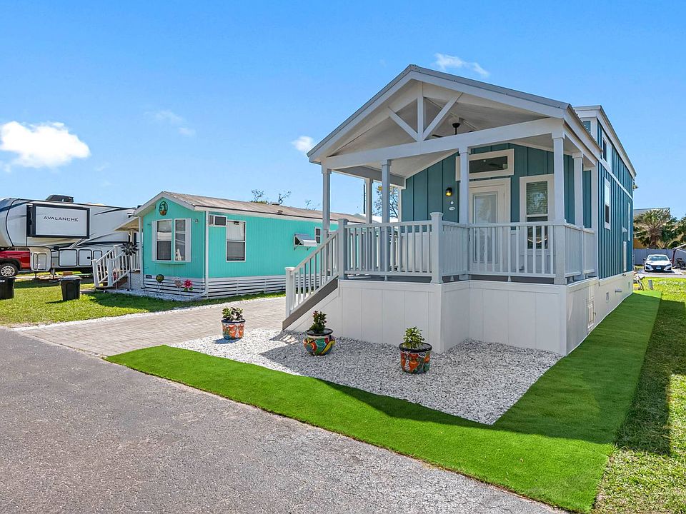 This NEW 2024 1 Bedroom, 1 Bath Resort Cottage Home features a bright open floor plan, glass enclosed shower, in unit stacked washer and dryer, and a large front covered patio deck perfect for entertaining. The kitchen includes energy-efficient stainless steel appliances and a deep farmhouse style stainless sink. Beach House Cottage Retreat is a 55+ community that offers unbeatable affordability, accessibility, and adventure. Cozily nestled just 2 miles from Indian Rocks Beach, breathtaking landscapes, infamous sunsets, incredible shopping, and fine restaurants. Site fees include water, sewer, trash, and lawncare. Amenities including a heated pool, shuffleboard, gate access to Publix, and New Resort Style Amenities are coming soon! Don't miss this opportunity to spend your winters out of the snow, or stay year round! Schedule your tour today and discover your perfect coastal retreat!