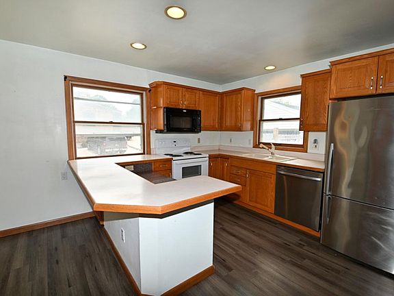 Nicely Updated 3 Bedroom Cape Cod with Lower Level Rec Room! Living Room with large picture window and hardwood flooring. Kitchen with custom cabinetry, snack bar and vinyl plank flooring. Full bath with tiled shower over tub, vanity and tile flooring. Main floor bedroom with hardwood flooring and patio doors opening to back patio area. 2nd main floor bedroom also with hardwood flooring. Upper with large Master Bedroom and Office with skylight. Spacious lower Rec Room with half bath. Fenced-in yard with Patio and walking distance to Dearbourn Park and Hank Aaron State Trail!