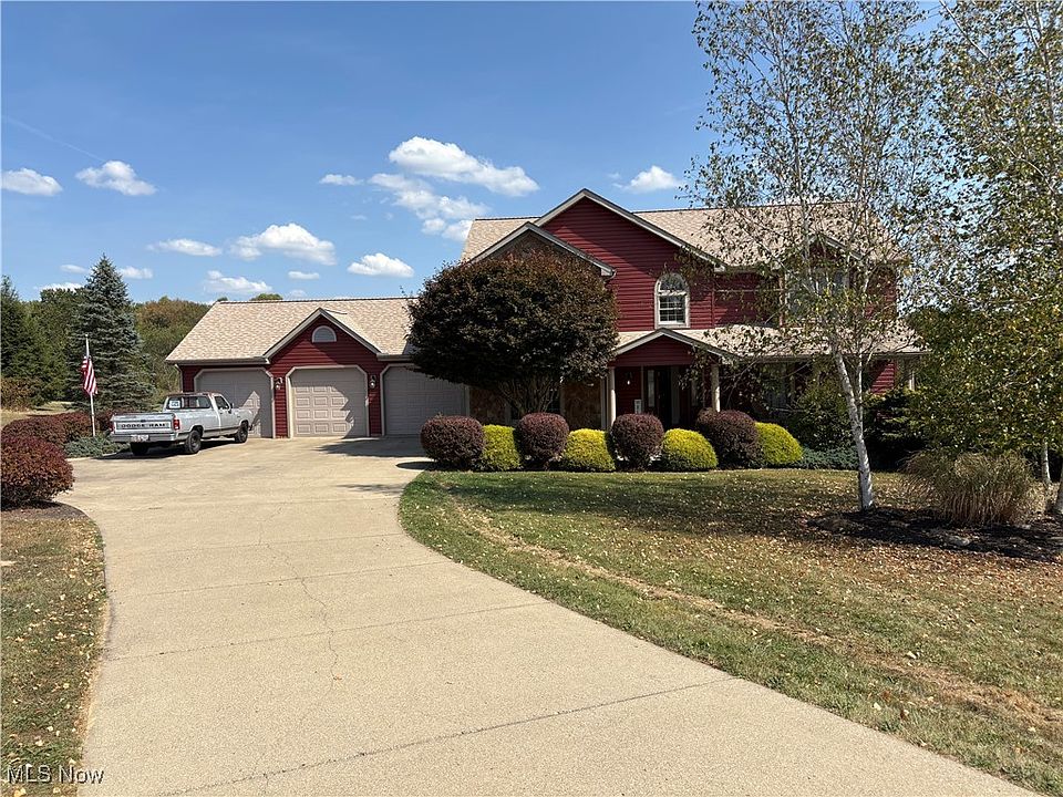 Cozy yet spacious home in a peaceful country setting. Great curb appeal and beautiful views of nature. There is plenty of space for everyone! The main floor features the LR, FR, DR, kitchen and a half bath. The walk out lower level consists of a media room, an office, a hobby room, a full bath plus storage areas. Four bedroms and two full baths complete the second floor. This home is immaculate and well maintained with numerous updates. All exterior doors including the sliding door leading to a completely new back porch and all garage doors were completed in 2025. There is a new Bosch dishwasher in the kitchen. Some lighting and other updates have also been completed. There is ample storage with twelve closets with a walk in for the primary bedroom. Extra storage in the three car garage and outbuilding. Roof and siding completed in 2021. Generac whole house generator with 5 year warranty installed in 2024. Air compressor in garage stays. SimpliSafe security system. Fiber optic cable is currently being run at the street.