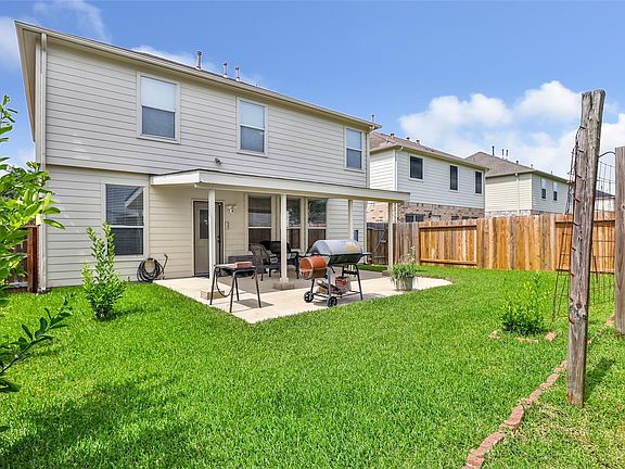 This house stands out among the best. Seller's pride is displayed from the moment you walk in and throughout your complete view of this home. Kitchen remodeled and updated meticulous with custom cabinets, quartz counter tops. slate tile, soft closing pull out cabinets and drawers. Under cabinet lighting that just sets this kitchen over the top. Nice large, covered patio (20x18), Mold resistant paint, solar screens on windows at the back of the house. Attic has two 100 gallon water tanks. Whole house water filtration system w/ water softener (salt free). Starting with the staircase and all of the second flooring (except slate tile in bathrooms) it is all stunning Bazillion Oak flooring. All bathrooms have quartz countertops. Primary bedroom suite has two nice size closets. Large game room or media room upstairs. HVAC only 3 years old, 50-year roof only 5 years old per seller