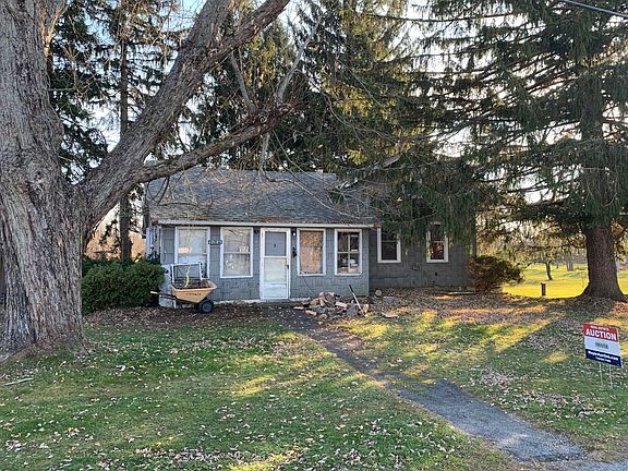 *AUCTION* This property sells to highest bidder on Thursday, December 18th at 7pm by public online offering for the estate owner who has chosen to use transparent & competitive bidding to determine the price. The price shown is the starting bid by default and has no bearing on sale price. What an opportunity! Old 2 bedroom farmhouse has been a rental for many years and can continue to be, tenant will stay if desired. One bedroom down and one bedroom up (not used) plus a large room upstairs on other side that could be a bedroom if renovated. Wood stove in kitchen supplements the gas forced-air furnace, floor laundry and bathroom with shower, 3car detached garage with electric on 1 acre with pond & stream. The first time in 33 years this property is available. Clear title guaranteed, all taxes current. Contingency free purchase. (This property is being split off a larger tax parcel with 32 acres across the street and a ranch house on 3.8 acres next to this house being offered separately). Bidder Information Pkg. available at preview. Bidding info., terms & preview times available on computer page.