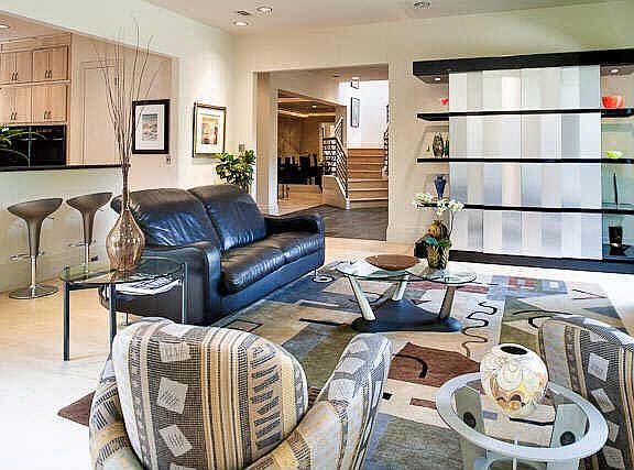 Located in the heart of Lake Forest, this sophisticated soft contemporary home offers a tastefully open floor plan with clean lines and an abundance of a natural light. With a beautifully manicured landscape and custom finishes throughout, one can see this home has been meticulously maintained. With soaring ceilings, slate and hardwood floors, fireplace, and windows throughout, the open living area and spectacular gourmet kitchen are the focal point of the home. Appointed with Subzero refrigerator, Viking gas cooktop, Amana double ovens, Bosch dishwasher, ice maker, wine cooler, and center island, the chef's kitchen and adjacent breakfast room and den with fireplace become a welcoming space for family and guests. The airy dining room off of the entry is open with custom finish on the walls. Down the hallway is an elevator, a study or exercise room, a wonderful view of the patio and waterfall and the master suite.