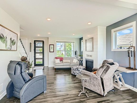 Come home to this 2018 stunning modern farmhouse 2 story on quiet cul-de-sac street.Tucked away in a small 36 home assoc w/LOW HOA fees,$95 month (billed 1/4),for lawn care, trimming, fertilization, mowing, & snow removal.Amenities-4 bedrooms upper level, custom cabinets, custom window trmts, enameled woodwork & doors,engin wood flrs,quartz countertops,vanities,center island,ss appliances, subway tile backsplash, mudroom bench w/hooks and walk-in coat closet, shiplap gas fireplace, main level office/study, private owners suite w/double door entry,spa-like bath-beautiful subway tile walk-in shower,seat & nook for soap,tile floor,dual sinks with quartz vanities,spacious walk-in closet,upper level laundry rm w/sink & cupboard to store detergent, huge LL family rm w/room for home theater, game room, home gym and poss 5th bdrm. There is LL rough in for future bathroom. This home has SOLAR panels=energy efficiency & elect car charger. Enjoy maint free liv w/o new construct wait or price tag.