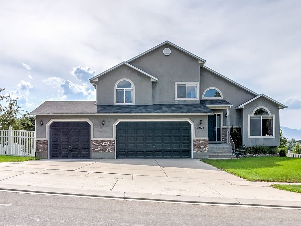 Recently updated with all new exterior stucco, neutral paint, deluxe plush carpet for an all new fresh look. 2 story home with fantastic views from all windows. Lots of storage space. 2 story vaulted living, kitchen and dining rooms. Large landscaped 1/3 acre lot. Partially finished basement with flexible architectural drawn up plans. Over-sized 3 car garage. Side yard has room for multiple RVs. Low $5 per month HOA dues. 1 mile to I-15 freeway. Distinguished Canyons School District.
