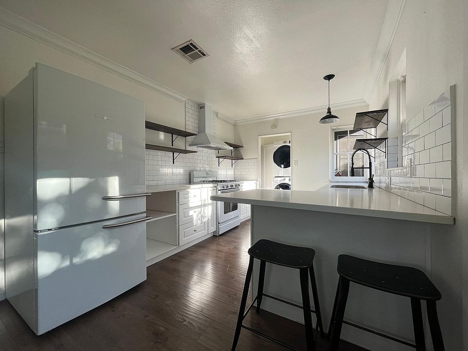 Remodeled front house for rent in heart of Studio City. Fenced front yard. Upgraded HAVC at the end of year 2022. Grey laminated hardwood floors. White quartz countertops and white subway tile back splash in the kitchen. Bathroom has matching subway tile with marble floors. GE kitchen appliance. Samsung washer and dryer. Central AC. Located on an elegant tree lined street in South of Ventura Blvd. 92 walk score. Close to all shops, restaurants, and a hiking trail. Walking distance to Stdio City farmers market. A few blocks from Carpenter Community Charter Elementary school. Pet friendly. Up to two pets permitted. Large dogs are allowed, $300/Pet upfront pet deposit. Parking on street with permit.