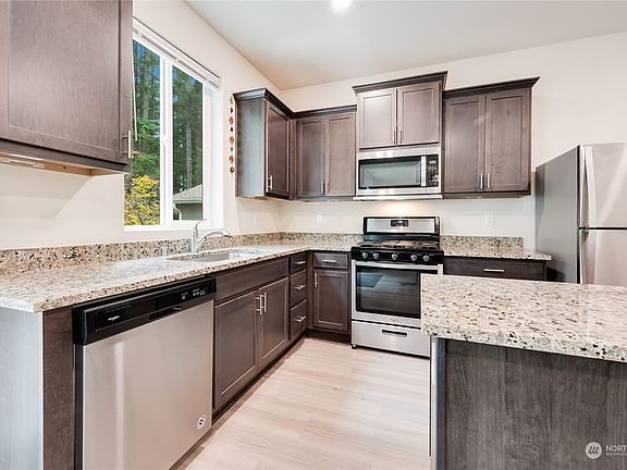 Welcome to this stunning Sultan home with the forest as a backdrop! This immaculate 3-bed, 2.5-bath residence is nestled in a planned neighborhood & boasts an open layout accentuated by vinyl wood plank floors. The heart of the home is the modern kitchen with sleek granite countertops. Upstairs, a bonus space offers flexibility for a home office. One of the standout features of this home is the deck, where you can enjoy your morning coffee.The serene lush forest creates privacy making it ideal for outdoor enjoyment. 2-car garage, mini split heating/cooling, Nice size laundry upstairs, powder room and natural light. With this home, you'll experience the best of both worlds – an up to date 2020 build and the tranquility of nature.