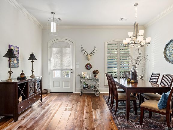 Welcome home to this picture-perfect 3 bed, 2 bath beauty offering 1,927 sq ft of timeless elegance and thoughtful design. Step inside to an inviting open floor plan perfect for entertaining where the living room glows with natural light and features a cozy gas fireplace framed in white brick with a classic wood mantle. Gorgeous wood beam accents and real wood floors flow throughout, adding warmth and character to every room. The kitchen is a true showpiece with gleaming granite countertops, a walk-in pantry, island/breakfast bar, and a brand-new gas stove—ready for all your favorite meals and gatherings. The spacious primary suite feels like a private retreat with its walk-in closet featuring custom built-ins and a spa-inspired bath complete with a garden soaking tub, separate shower, double sinks, and a linen closet. A charming mudroom, two-car garage with storage, and well-planned layout make everyday living effortless. Step outside to enjoy the covered back patio with an extended wood deck and appreciate the fully fenced backyard. No Flood Insurance Required! 100% Financing Available! Elegant, cozy, and full of thoughtful details, this home is truly love at first sight. Schedule your private showing today!