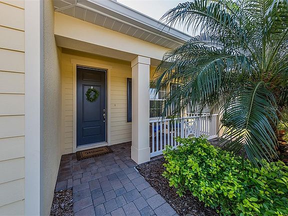 Like new home offered turnkey. Move right in! This three bedroom, two bath, plus den home has been meticulously maintained and boasts decorator touches, architectural upgrades, neutral colors and high ceilings throughout. Kitchen and great room areas feature crown molding with wood encased windows, shaker beaded wood cabinets with under-mounted lighting, tiled backsplash, quartz countertops, center island with breakfast bar area, GE stainless steel appliances, decorative lighting fixtures, paddle fan, trey ceiling and sliders to the extended lanai which overlooks natural preserve and offers tons of privacy with its natural screening. Split bedroom plan. Master en-suite features a large walk-in closet with shelving, dual vanities, a walk-in Roman shower and transom window. Bedrooms two and three are spacious with an abundance of natural light. French doors open to the den/office featuring hardwood floors. Laundry room has a sink, cabinets, shelving and GE Steam Technology washer and dryer. This home has plenty of storage. Garage was extended, has a utility sink and shelving. Home has hurricane shutters, gutters and lot offers plenty of room for a pool too! Seller offering one year lawn maintenance - a value of $1,000. LOW HOA and CDD fees. Grand Palm is an amenity rich, gated community that offers resort style pools, splash park, fishing, kayaking, biking and walking paths, basketball, tennis, bocce ball, two dog parks and an open cafe kitchen. Call for your personal tour today! Don't miss this one!