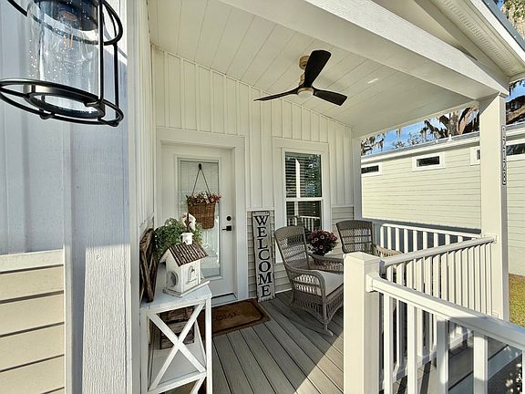 Step into this beautifully crafted 2025 Palm Harbor Manufactured Home, offering 2 bedrooms, 2 bathrooms, and 956sqft of modern, efficient living space. Designed with comfort and quality in mind, this home features LVT vinyl flooring, crown molding, upgraded fixtures, a durable metal roof, and HUD certification. The stylish kitchen is a true highlight, complete with stainless steel appliances, granite countertops, a stainless farmhouse sink, and a premium washer/dryer combo that stays with the home. The primary suite offers a luxurious tile shower, adding a touch of elegance to your daily routine. Enjoy peaceful mornings and relaxing evenings on your front porch or on the back sitting area, where you'll appreciate the serene water view of Lake Andrew. This all ages welcome community was thoughtfully designed for resort-style, carefree living, offering an impressive array of amenities and conveniences. The all-in-one community fee covers your monthly land lease, lawncare and landscaping, water/sewer/trash, cable, and high-speed internet, ensuring a streamlined lifestyle. Residents also enjoy access to a resort-style pool, fitness center with yoga studio, clubhouse, fire pit, sitting dock, dog park, community garden, pickleball court, walking path, EV charging station, tool-borrowing program, and more. With its modern finishes, water views, and a community centered on connection and convenience, this home offers the ideal balance of comfort and low-maintenance living. Schedule your visit today!