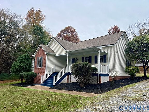 Experience the best of both worlds with this 3 acre country retreat. Just 8 minutes to the nearest grocery store, 20 minutes to Midlothian, and 45 minutes from downtown Richmond. While offering a private, secluded location for ultimate tranquility, this rancher provides all the modern comforts you need. Featuring an open concept kitchen with custom cabinetry, beautiful granite countertops, two full bathrooms, a master bedroom with walk-In closet, and double doors which open up to the large outdoor deck. Custom features include a well maintained rose garden and 1 acre of fenced in space for activities. Relax under the pergola with custom built stone floor while enjoying the sound of birds and occasional family of deer. This property is move-in ready and designed for comfortable living; it provides the beauty of a rustic setting with the convenience and style of contemporary upgrades, ensuring a peaceful lifestyle without sacrificing modern amenities.