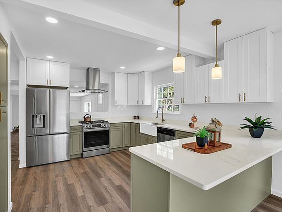 Brand new kitchen, bathrooms, floors and lighting. 3 bedrooms and a bath up and a primary suite on the 1st floor. Could be used as in-law suite or office. 2 separate living spaces. If you like to enjoy the outdoors, you'll enjoy the new pavered patio and the basketball court. Plenty of room to spread out! There is also a partially finished basement with an area that could be used as a wine cellar. This home is complete with walk up attic, a 2.5 car garage, and ample parking in the driveway. Must See! Available now!