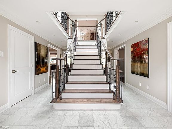 Nothing to do but move in and enjoy. 5,446 total square feet of impeccably maintained living space. Gorgeous backyard with pool and patios backing onto green space. Dramatic entry to home with soaring ceiling height with skylight, Scarlett O’Hara staircase and honed marble floor tiles. Huge primary suite with luxurious 6 piece en-suite and walk-in closet with organizers. The en-suite has a dual frameless shower with Riobel plumbing fixtures including body jets, stand-alone tub over-looking the backyard, two vanities with Swarovski crystal hardware, heated floors, all very tastefully done. Solid wood custom kitchen cabinets with quartz countertops, new appliances, built-in eat-in area, and niche to do homework. Open to family room, great for entertaining. Extensive plaster crown mouldings throughout the main level. Reno’d laundry room. Newly renovated lower level with plush carpet, many pot lights, new 3 piece bath and fresh paint. Awesome backyard backing onto green space. In-ground pool, gazebo, landscaping, and privacy fencing, fire bowls and patios for gatherings. Thoughtfully updated with recent upgrades to bathrooms, laundry room, furnace, a/c, windows, electrical panel, pool equipment and much more. Fantastic location on a quiet street in an established neighbourhood known for its school district. Convenient access to highway and GO station.