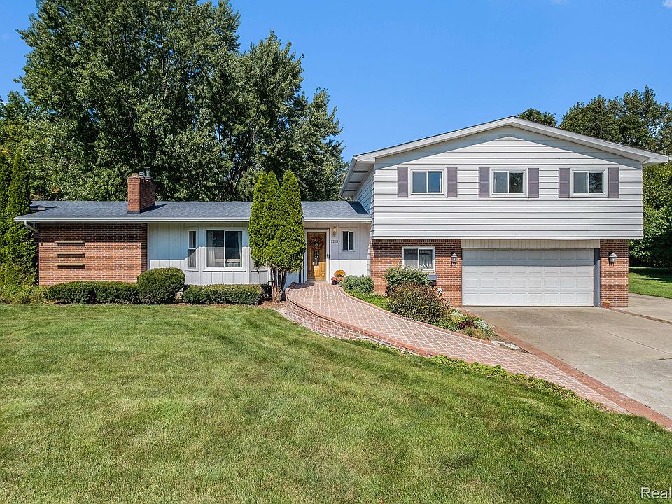 Welcome to 1213 Carter Dr, a 4 bed, 4 bath house with a stunning backyard oasis! Sitting on almost an acre, this home has been loved and cared for by the same owners since 1981. Its generous size of over 2600 sq ft, features 2 primary suites, one on the main level with full en suite bath, and the second primary on the upper level with en suite half bath. Thinking ahead, the owners installed a beautiful brick ramp for accessibility to the front door and also made the main floor primary suite wheelchair accessible. The main floor also features the living room with beautiful gas fireplace, a dining room with charming built-in cabinets and shelving, the kitchen with eat-in space, and a half bath. The lower level has a large family room overlooking the incredible backyard and the laundry room. The upper level has the second primary suite, a large bedroom accessible by two doors, possibly allowing for the addition of another bedroom, one more bedroom, and a full bath. The basement has ample shelving, peg boards, and a workbench. Another especially handy feature are the cellar doors that open to the backyard that the seller used for bringing wood straight down to his woodshop. The backyard is truly incredible featuring a pond with running water, flowering lily pads, and lush landscaping. 2 of the mature maple trees were planted by the sellers decades ago to specifically hold a hammock feet away from the pond. You may choose to relax on the deck, or enjoy spending time in the large garden plot. With so much to love, there are also some very practical updates: New furnace and A/C in 2022; water heater 2021; sump pump 2024; garage door 2024; kitchen flooring 2022. The home is also wired for a whole-house generator, there are Gutter Helmet protectors on the gutters, an extra-wide fiberglass reinforced driveway, a fully heated & insulated garage with Gator Guard flooring, and Ring doorbell with 2 cameras that will stay. Close proximity to I-75, I-69, 475, and McLaren Flint.