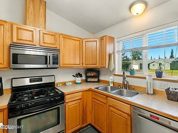 A GREAT START! This 5 Star ranch home borders Kenaitze land in back for privacy. 1338 sf one level w/3 bedrooms & 2 baths in a paved neighborhood. Spacious Primary suite is located on one side of the vaulted & open main living area for privacy from the other bedrooms. Newer Luxury Vinyl plank flooring, hot water heater & dishwasher in 2023. Shelter Logic shed can stay if buyer wants.