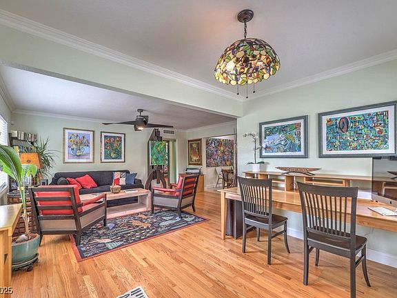 Charming Fully Remodeled Home with Artistic Touches in Historic District – No HOA! Fall in love with this beautifully remodeled home full of artistic character, located on a quiet street in a historic district just minutes from the Las Vegas Strip. Set on a large lot with RV hookup, long driveway, and covered parking. Enjoy the privacy of a fully fenced backyard and the charm of two front entrances, one leading directly into the kitchen. Inside, the home features a bright and airy open layout with large windows showcasing a lovely view. The remodeled kitchen shines with granite countertops, colorful eclectic tiles, and all appliances included. Original hardwood floors have been lovingly restored through sanding and staining, adding warmth and character throughout. Other updates include new windows and fully remodeled bathrooms with stylish finishes. With no HOA restrictions, this home offers flexibility, comfort, and charm in one of Las Vegas’s most desirable historic neighborhoods.