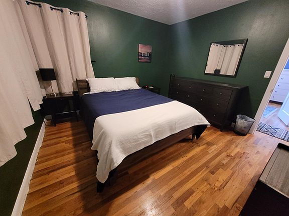 Bedrooms: Each bedroom has a fully made bed, dresser, nightstand, and closet storage. There are blackout curtains, handy for night shift workers. There is also a large portable fan available in the unit for white noise.