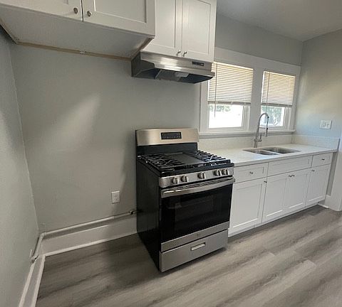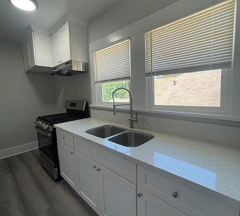 VINLY CLICK FLOORING THROUGHOUT, QUARTZ COUNTER TOPS, SHAKER CABINETS, STAINLESS STEEL GAS STOVE INCLUDED