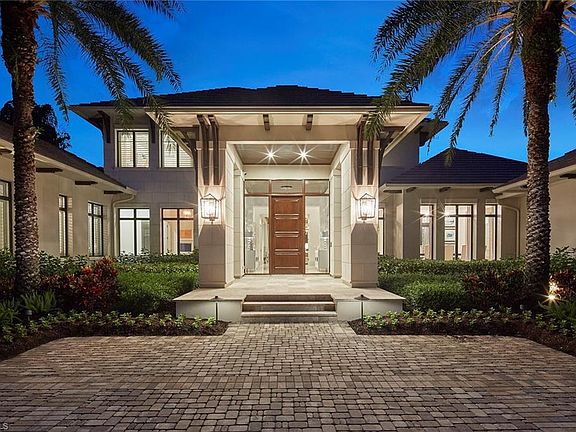 Immediate full golf membership eligibility. This stunning clean-lined former Stock Custom Homes model resides on a private .71-acre homesite and is being offered turnkey furnished. The over 7,700-square-foot estate features five bedrooms, five full and two half baths, study, club room and second floor loft. This home lends itself to entertaining family and friends including an open great room plan adjacent to an oversized club room with wet bar and opens to the spacious lanai. Enjoy Naples mild climate and outdoor living featuring a gas heated pool and spa, fire bowls, gas fireplace and a sizeable, covered lanai with intricate wood ceiling, all enclosed at the touch of a button with automated screens and hurricane shutters. Guest bedrooms are en suite including a first floor private VIP retreat with morning bar ideal for guests or a live-in family member. Additional features include an attached four-car garage, impact windows and doors, whole-home natural-gas generator, elevator, Wolf and Sub-Zero appliances and climate-controlled wine room. A world of luxury awaits you within the updated Grey Oaks Country Club community minutes from world-class amenities of Old Naples.