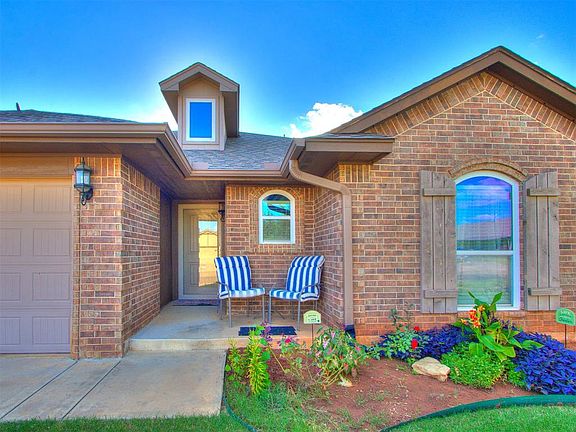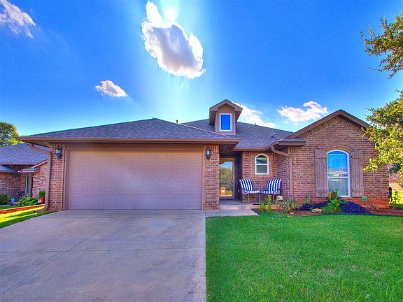 A CHARMING HOME IN YUKON WITH EASY ACCESS TO I-40 & TURNPIKE! Nestled in the highly-desired neighborhood of Sycamore Creek, this 3beds/2baths/2cars home in top-rated Mustang Schools is a dream come true! A nice porch welcomes you as you approach the home. Main entryway opens to a foyer leading to the Primary Bedroom and Laundry Area and straight to the Living Area that features a corner slate stone fireplace with wooden mantle and huge windows for natural lighting - perfect for entertaining guest or just your daily family hang out. Main Dining area is bright and airy and can accommodate 6-8 seating table. Kitchen features granite countertops & nice backsplashes, breakfast bar, stainless appliances and stained cabinetry for storage. Primary bedroom is huge and highlights a primary bathroom with double vanities, a large walk-in closet, shower enclosures and a huge soaker tub! 2 other good-sized bedrooms have oversized closets. Laundry Area is a storage haven with all its built-in stained cabinetry! Covered backyard with extended pergola is perfect for BBQ nights or al fresco dine out while your family and guest enjoy the huge backyard for lots of activities! Highly accessible to I-40 and Turnpike, this home is in close proximity to Yukon and Mustang's medical facilities, dining and entertainment scenes! Schedule your showing now!