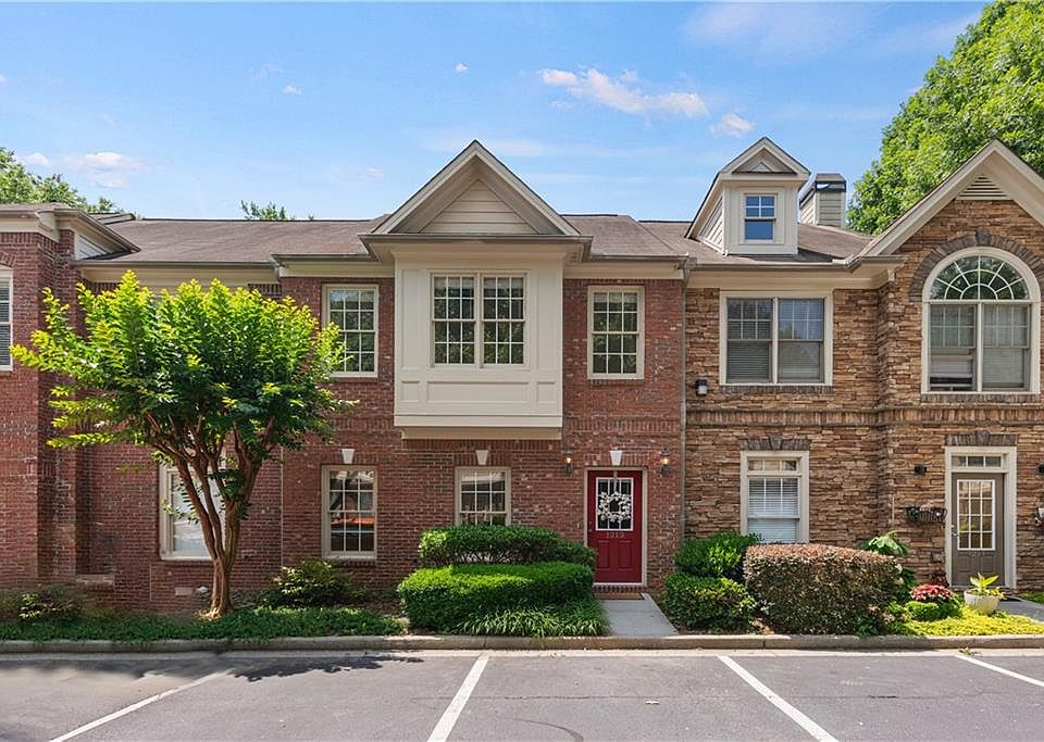 Tucked on a serene tree-lined street in Roswell only 2 miles from downtown Alpharetta, this charming renovated townhome provides a peaceful haven. Upon entering you will notice the high ceilings, new LVP flooring, abundance of windows and natural light. The living room with gas fireplace flows into the kitchen with gas oven and granite countertops. A fenced in back porch overlooking woods and a stream is the perfect place to relax. From the porch, you can access your outdoor storage room. Upstairs you will find two oversized ensuite bedrooms with walk in closets and a laundry room. This townhome has a new roof, new water heater and a newer HVAC. Harris Commons is a charming, quiet, well kept community that connects to walking trails and is just one mile away from Wills Park. Welcome home.