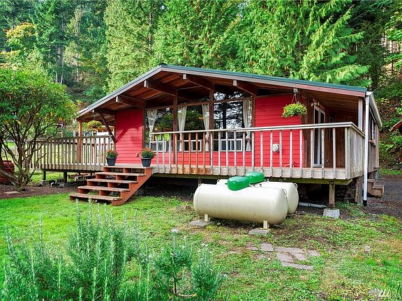 This lovely two bedroom, one level cabin is all you need- sitting proudly on two flat lots with a ready-to-go fenced garden & chicken coop. This is that easy-to-love island home you have been looking for! Walking distance to the beach, boat launch & clubhouse as well as the swimming lake it is a fantastic starter home or getaway. Adorable updates have been done in this cabin creating a cozy, vintage charm. Wrap-around porch is fantastic for outdoor meals and entertaining!