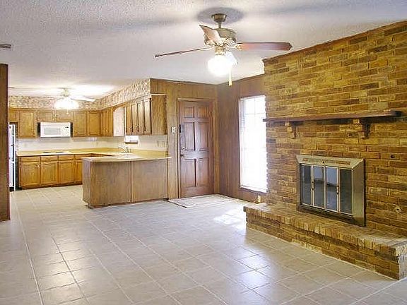 Warm and inviting home on a quiet tree lined street.Close to the park,in the desired Hospital District Neighborhood.Nicely landscaped. The spacious kitchen features an abundance of cabinets,some updating of appliances,a breakfast bar and ceramic tile flooring.Spacious split bedrooms. Notice the size of the master with 2 walk in closets.Private patio ready for a cook out. Ceiling fans, sklight,sprinkler system.