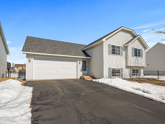 Welcome to this 4 bedroom, 2 bath split entry home conveniently located off of Hwy 3 in Farmington! The neutral colors, vaulted ceilings and flowing floor plan give this home an open & airy feeling. With a Living Room upstairs, Family Room downstairs, nicely sized kitchen with access to the deck and fenced backyard, there is plenty of space for all your family entertaining needs! Close to many amenities, trails, parks, and more! Don't miss your chance to call this house your home!