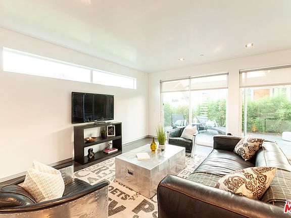 This single family home sits at the back of the lot behind two townhomes- you'll be tucked away in your own oasis! With cobalt blue accents around the exterior, the entrance makes a classy statement-- one your houseguests are sure to remember. The living room has that must-have-ever-so-popular open-floorplan vibe with an open kitchen begging you to throw it a party! Off to the left are glass doors that open to your very own, private backyard haven that includes an 8 foot jacuzzi/lap pool and custom gas fire-pit-- all surrounded by gorgeous landscaping.Up the stairs you'll find the bedrooms (which are HUGE ) each including custom, built-out closets. Sexy and sleek tiled showers, tons of natural light-- the list goes on and on for the packed-out amenities in this home! Take in your exclusive view of Hollywood and it's iconic sign from the top-level deck-- perfect for sunset toasts or sunrise yoga.