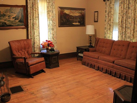 This solid built home with hardwood floors has room to live and breathe. very comfotable with 4 bedrooms, 2 full baths, dining room, living, den and eat-in kitchen. One of the large bedrooms is down stairs adjoining a bathroom. There is an enclosed porch on the back of the house for coffee in the Morning Sun. Three bedrooms, study, and full bath upstairs. Full basement has mechanical room, storage room and work shop with 2 outside entrances. Fenced in yard. Large lot below the house goes all the way to the RR tracks.