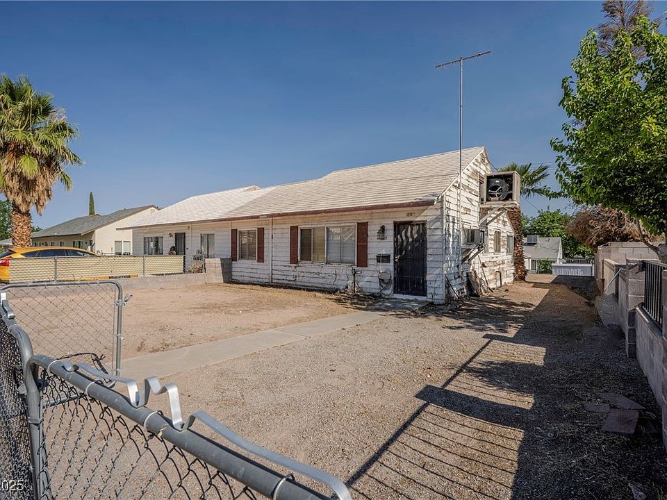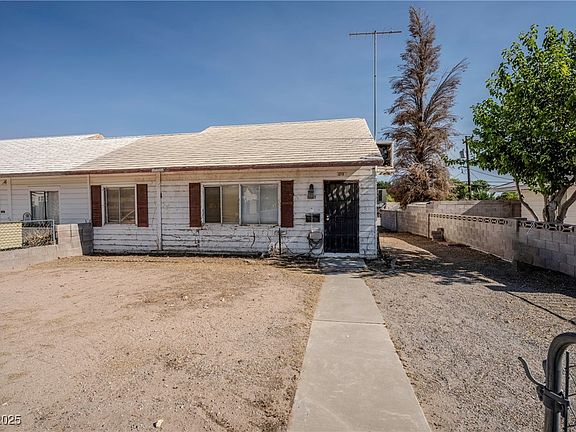 Charming Duplex in Historic Boulder City! This 2-bedroom, 1-bath home offers 948 sqft of inviting living space on a 4,356 sqft lot with alley access. Built on a solid concrete foundation, this all-electric single-family duplex features a spacious living room, a den perfect for a home office or hobby space, and a dedicated dining area. The well-placed laundry closet adds convenience, while a secret door reveals a versatile upstairs loft—ideal for storage, a creative studio, or a guest space. Located in a quiet, established neighborhood with no HOA, this unique home blends vintage character with surprising functionality. Don’t miss this rare opportunity in the heart of Boulder City!