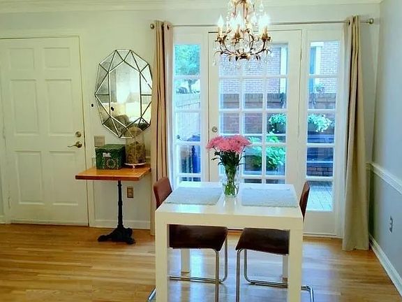Beautiful 2 bedroom, 2 bath, end-unit townhome blocks from King Street eateries and Metro! Light-filled, spacious, hardwood floors in the living/dining room and kitchen with granite counters and stainless-steel appliances on main level. Master on first upper level with bath. Second bedroom with en suite on the next level. Lots of storage with large closets, in eaves and under stairs. Access the private patio through french doors for grilling, dining al fresco or simply enjoying the fresh air under the shade trees. Nearby you'll find restaurants, coffee shops, shopping and metro rail and bus. Welcome home! Renters are responsible for electrical and internet. Other utilities are included.