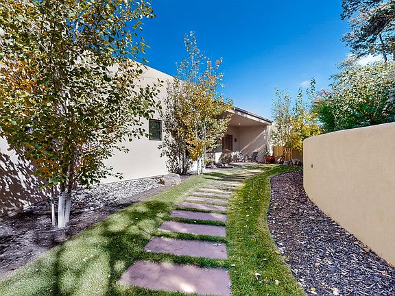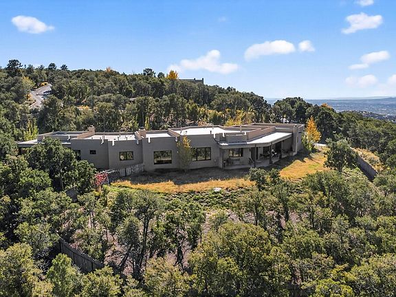 Experience refined Santa Fe living in this recently completed custom home by acclaimed builder John Reeder Construction, located in the highly sought-after gated High Summit community off Hyde Park Road. This residence is approximately 3546 sq ft with 3 bedrooms and blends modern design with timeless southwest elements. The heart of this home is a true chef's kitchen, featuring exquisite custom cabinetry, a spacious center island with built-in service drawers, and seamless access to a climate-controlled wine room that accommodates hundreds of bottles- perfect for entertaining. The open-concept family room boasts a grand fireplace and opens onto a covered portal ideal for al fresco dining while taking in breathtaking sunsets over the Santa Fe skyline. In total, this home includes four fireplaces, creating warmth and ambiance throughout. A stunning gallery-style entry provides the perfect backdrop for art and sets the tone for the rest of the home. Enjoy sweeping views of the Sangre de Cristo and Jemez mountains, as well as sparkling city lights. The professionally landscaped grounds feature two tranquil fountains and is situated on two consolidated lots, ensuring exceptional privacy-- especially for the serene primary suite. Additional features include paved roads to the home which opens onto a gated driveway lined with stone pavers. The garage is oversized (approximately 1000 sq ft). The development has underground utilities and is situated in a prime location approximately 5 minutes from the historic Santa Fe Plaza, renowned galleries and top-tier dining.