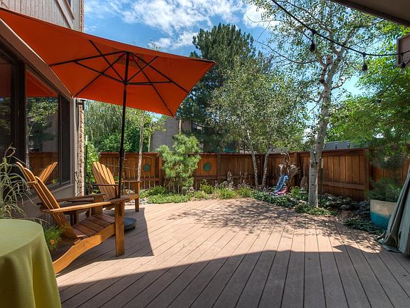 Updated everything! 2/3 bdrm & 2.5 bath spacious well-lit townhome. New paint inside and out, new trim, heavenly remodeled open kitchen with huge modern pantry and dining area. Large master bedroom with gorgeous master bathroom upstairs with new soaking tub, walnut and stone cabinetry and plenty of cleverly hidden storage space. Second upstair bedroom overlooking the patio garden and old-growth community trees. Ceiling fans w/ remote installed in both bedrooms. Lovely living room with ceiling fan and wood-burning fireplace looks out on the landscaped/fenced patio and combines openness with privacy. Plenty of storage space throughout, plenty of natural light from three skylights. Fully finished two-room basement with closet spaces, full refinished bathroom and laundry nook with new front-loading washer and dryer. Privacy fence enclosing extra-large courtyard with no-care trex deck with a,no-care rock garden - Oversized garage with opener, collapsable work bench and storage/tool shelving. Deeded parking for two vehicles, option for free third space if you have 3 vehicles.