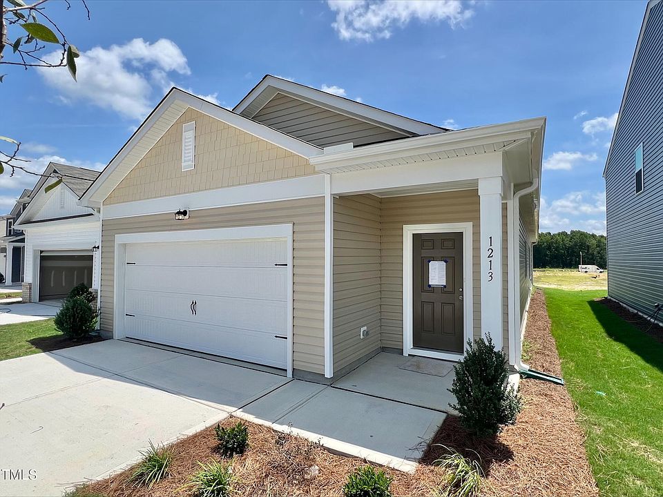 Designed for both comfort and convenience, the Athena is a well-appointed 3-bedroom, 2-bath ranch home spanning 1,522 sq. ft. Its open-concept layout creates a seamless flow between the kitchen, dining, and living areas, making everyday living and entertaining effortless. The kitchen serves as the heart of the home, featuring a spacious island, granite countertops, walk-in pantry, and brand-new stainless steel appliances. The owner's suite offers a private retreat with a generous walk-in closet and a thoughtfully designed en-suite bath. Two additional bedrooms provide flexibility—whether you need extra space for guests, a home office, or a personal retreat. Step outside onto the patio, an inviting space for outdoor dining or unwinding after a long day. Located in The Point, just off US-401, the Athena offers a balance of peaceful living and city convenience with easy access to I-540, Raleigh, and Wake Forest. This master-planned community features a wealth of amenities, including a pool, clubhouse, dog park, playground, and scenic walking trails. Photos are representative only and may not be of actual home. Features, colors, and finishes may vary in actual home.