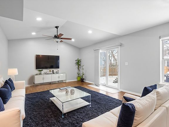 Welcome to this beautifully renovated 3-bedroom, 1.5-bathroom duplex style home in Cambridge Pointe subdivision in Carol Stream! NO HOA dues!! This home features wood laminate flooring and ceramic tile throughout. The updated kitchen boasts NEW white kitchen cabinets (2023), white marble inspired Quartz countertops, a tile backsplash, and NEW stainless steel appliances (2023). Enjoy the spacious family room with cathedral ceilings, plus cathedral ceilings in all three bedrooms. The full bathroom is updated with ceramic tile flooring as well as a stand up tile shower. Outside, you will find the fully fenced backyard which offers a brick paver patio and a storage shed. Schedule your tour today!