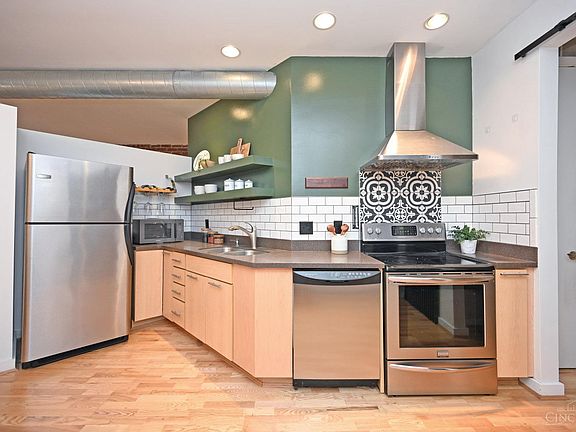 Step into this stylish, fully updated 699 sq. ft. condo with an assigned, gated parking spot located in the vibrant heart of Over-the-Rhine. Perfectly positioned, you'll find entertainment, dining, shops, and green spaces just outside your door. This second-floor unit features one spacious bedroom, a full bathroom, and an open kitchen outfitted with stainless steel appliances. The condo also boasts high ceilings, beautiful wood floors, a stacked front-loading washer and dryer, and custom cabinetry. With an ideal location, you're only 20 minutes from CVG airport, 5 minutes from Covington and Newport, KY, and conveniently close to the Cincinnati Zoo and Botanical Gardens, University of Cincinnati, UC Hospital, Findlay Market, the Newport Super Kroger, the downtown and other locally owned shops.