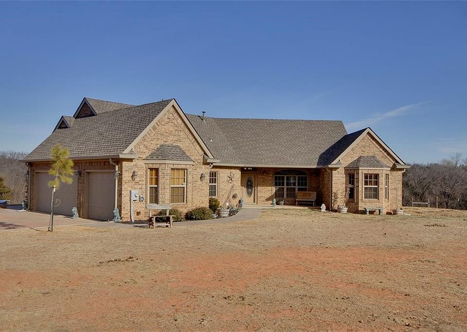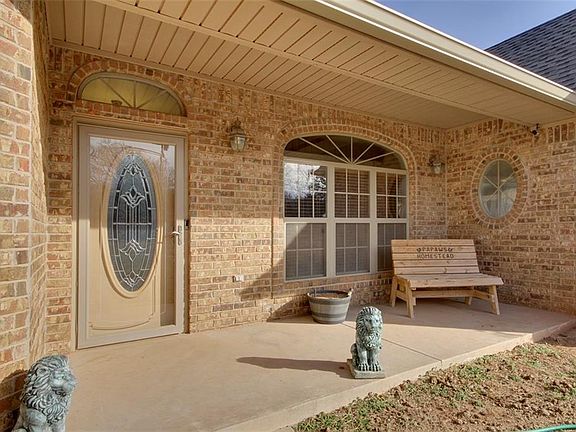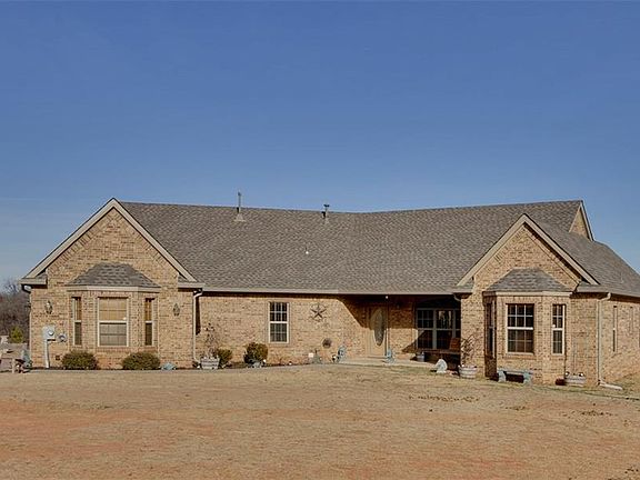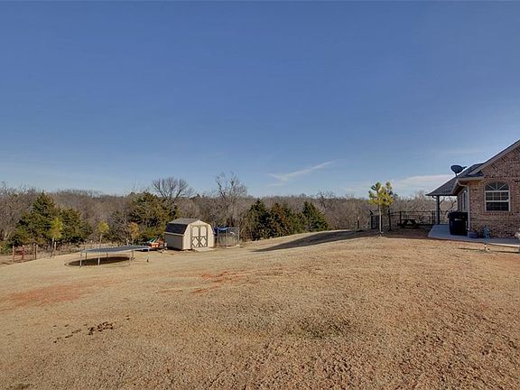 Beautiful, well maintained home with Country living at it's fullest! Horses, creek, trees, privacy. Horse shelter & round pen. Pipe fencing in front w/electric gate entrance, dog run. Property fenced & cross fenced with 3 gates. Newly installed OZ safe room. Near new roof, wind turbans, commercial gr. 6" guttering, D/W, well pump, hot water tank, & garbage disposal. Storage bldg built on site w/extra thick flooring & ramp. Full alarm system inside & out, including Security camera's, motion sensors & glass shatter sensors. Surround sound system in Living area. House pre wired & breaker box ready for generator. Walk in pantry with auto light connection in door, making it super convenient when hands are full & need one free to turn on light! Open floor plan with plenty of room for family gatherings. Beautiful built ins in kitchen & dining for your fine china or art displays! Pasture in back/open range is Bermuda grass, great for cattle and/or horses!