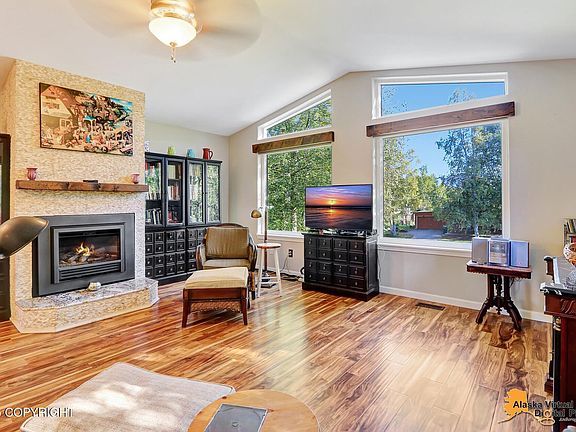 Great neighborhood in South Anchorage with no HOA! 4 bedroom, 2 bathroom home with 2 living areas. Vaulted ceilings in upstairs living w/ partial mountain views. Concrete kitchen counters, LVP and tile flooring. Large .43 acre lot w/fenced backyard, separate gated garden area. Two large decks for entertaining and a tree house/rec room with electricity. Home inspection and repairs complete!