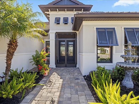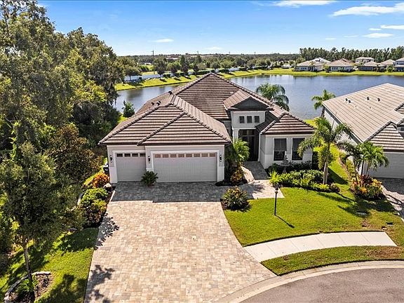 BRING YOUR TRUCK!!! For the most discriminating buyer, when only the best will do, this home is for you! Situated on a cul-de-sac on one of the nicest, most private lots in the neighborhood. Curb appeal is at the height featuring crisp landscaping, a corner lot setting flanked by trees and adorned with Bahama Shutters. From the moment you enter through the enclosed, screened front porch you will be dazzled as you take in A MOST EXTENSIVE VIEW OF THE POND - arguably the most beautiful view in the neighborhood. This thoughtfully designed Lee Wetherington River Wilderness home features open concept living and showcases elevated finishes throughout. This Royal Palm EXTENDED MODEL is a true 3 Bedroom, 3 Bath home WITH A DEDICATED OFFICE/DEN/STUDY/MIL SUITE OR 4TH BEDROOM. The split floorplan provides privacy for both the owner and guests with two bedrooms and a bath offset from the main area of the house. An open concept dining room/family room (that has been extended by 5 feet) and kitchen flow seamlessly to maximize the captivating view. A fully-pocketing sliding door spans the full width of the family room and leads to the large lanai featuring a hot tub that is NEGOTIABLE. The primary bedroom continues to capitalize on the view that greets you every morning. Step into the kitchen, a culinary enthusiast’s dream, with custom cabinets, roll outs in the cabinets, TWO PANTRIES, GE Cafe appliances and oversized CAMBRIA center island. Tucked away to the back of the house off the family room is a private office and full bath. This room enjoys unparalleled views of the pond that will leave you spellbound. This home has more weather protection than most - the windows and doors are all impact resistant. In addition, there is automated hurricane protection on the back lanai. A WHOLE-HOUSE GENERATOR provides peace of mind during weather events with TWO 120 GAL PROPANE TANKS ensuring that you will never be left without power. The THREE-CAR OVERSIZED GARAGE (27.8X 24.2 -- expanded by 4 feet) will fit most any truck height or length. The hybrid water heater provides extra cooling in the garage and the icynene insulation keeps the attic cool enough to provide a storage space (8x10) to keep stored items cool and dry. The Cypress Glen HOA fee provides maintenance free lawncare that includes irrigation, fertilization, pruning and mowing. RW is an established community with winding, tree-lined streets with tall oaks and mature landscaping. Walkers, bikers and neighbors walking their dogs set the scene for an active and social community. The Club offers golf, tennis, social activities, pickleball, pool and more. Boat and RV storage in community. For the nature lovers, there are hiking trails and abundant wildlife. There are two 24-hour manned gates. CLUB MEMBERSHIP IS OPTIONAL. Golf and dining is open to the community. There is a COMMUNITY BOAT RAMP that is open to the entire community and provides direct access to the Manatee River. RW is PERFECTLY LOCATED! Strategically positioned between St. Pete and Sarasota, access to 2 airports (45 min.) several hospitals are available to the north and south. Ft Hammer Park located on the beautiful Manatee River is just minutes south of the front gate and features a boat ramp, fishing pier plus picnic pavilion. Lakewood Ranch and Sarasota are nearby where fine dining and shopping are within easy reach. WASHER, DRYER, GARAGE REFRIGERATOR AND FOUNTAIN DO NOT CONVEY. HOT TUB IS NEGOTIABLE.
