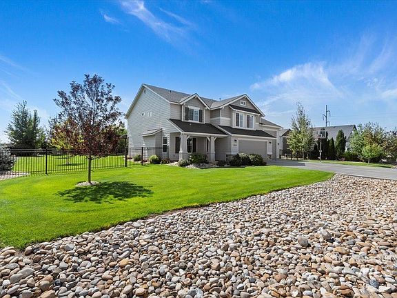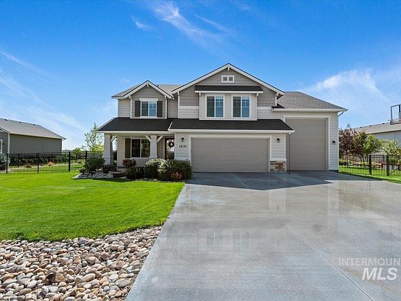 Perfectly located for both convenience and adventure, this stunning home offers quick access to shopping, dining, and entertainment, while outdoor enthusiasts will love the nearby BLM land, Birds of Prey, Indian Creek, ATV trails, fishing, and golf. Swan Falls and the Snake River are just 30 minutes away. Sitting on a flat 0.5-acre lot, it boasts a 14x40 RV garage and a beautifully maintained interior. The open layout features a warm living room with custom built-ins and fireplace, a dining area, and a gorgeous kitchen with large island, walk-in pantry, and built-in coffee bar. Upstairs, retreat to a luxurious master suite with Owyhee views and an oversized closet. Outside, enjoy a private oasis with pergola-covered patio, hot tub, two sheds, garden space, and no rear neighbors. With 5 bedrooms, abundant storage, new carpet (2023), new A/C (2024), and a country feel paired with modern comforts, this is the perfect place to call home!