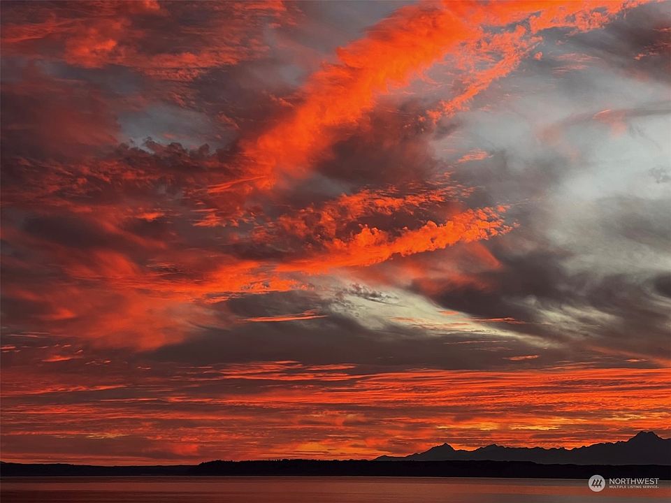 This waterfront home offers breathtaking views of Puget Sound, the Olympic Mountains, & Whidbey Island from its unobstructed 180° vista. The ever-changing colors of the sunsets will leave you delighted & amazed each day. Offering 2 primary suites, this home is designed to provide maximum comfort and convenience. The bathrooms are finished with luxurious granite & travertine, while the large open kitchen is equipped with cherry cabinets, granite counters, & stainless steel appliances. Gleaming hardwoods on the first floor add a touch of elegance & warmth to this already stunning home. If you're looking for a waterfront property with a range of eco-friendly features and luxurious finishes, this is the perfect home for you!