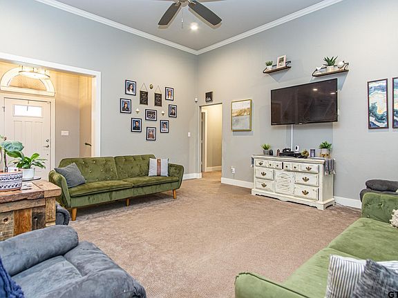 Welcome to your spacious 5 bedroom 3 full bathroom open concept home. Soaring ceilings, mud bench, solar panels, smart car charging port and a tornado shelter are just a few of the extras this home has to offer. Large living space overlooking the kitchen and cover back patio. Custom cabinets, granite, island, custom back splash with dining space and extra seating at the island. Master boasts tray ceiling, tiled walk in shower, soaking tub, closet with built-ins that connects to the laundry room with extra storage space. Split floorplan, jack and jlll bathroom, all 4 guest bedrooms have spacious closets. Work from home? No problem, neighborhood offers Suddenlink internet.