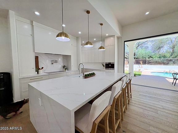 Relax in the Primary Oasis, boasting soaring ceilings and spa inspired bathroom with generous fully outfitted closet storage. The At-Home Office promotes the ease of zoom calls without disruptions. Guest rooms are large with wonderful closet storage. Immerse yourself in the Luxury of the Private, landscaped yard backing to the wash, complete with Pool, Lounging areas; ideal for Outdoor Dining & Socializing, all within a quiet, Family-Friendly Neighborhood that offers Peace and Privacy perfectly located just minutes from elite private schools, including the highly sought-after BASIS. This home offers both Comfort and Convenience in one of the most Desirable areas.