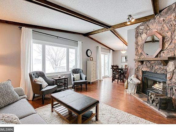 Updated home in Maple Grove near Arbor Lakes restaurants and shopping; quick access to I-494. 94 and 169. Main level features 2 beds and remodeled full bath. Kitchen has white cabinetry, new hardware and brand new appliances. Cozy living area with stone fireplace, vaulted ceilings and exposed beams. All new floors on upper level and entry. Lower level family room, bed and remodeled bath. Beautiful views out the backyard, large deck and patio! This one will not last long!